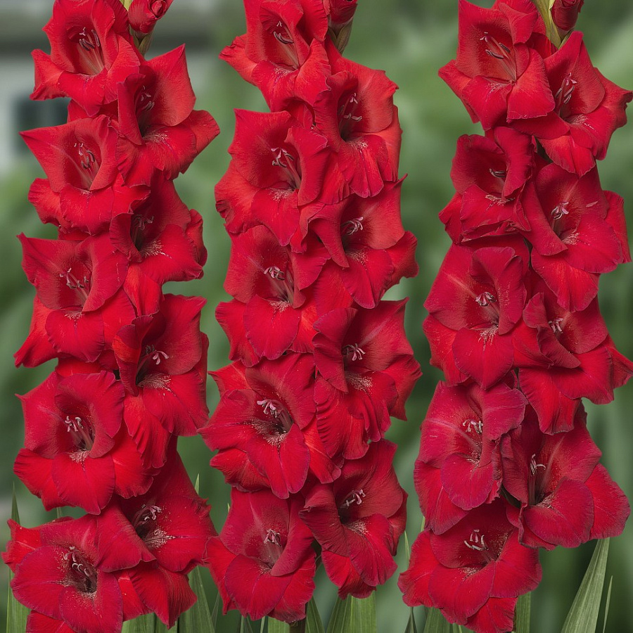 Гладиолус крупноцветковый "Рома" - это великолепное растение, которое поразит вас своей красотой и изяществом. Его стебель прочный и прямой, достигает внушительной высоты, а крупные цветки с красным оттенком и белым штрихом привлекут восхищенные взгляды окружающих. Листья гладиолуса имеют интересную форму, что делает его еще более привлекательным.
