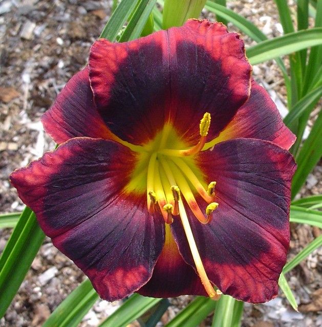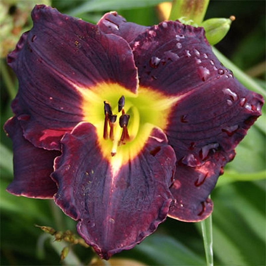 • Окраска цветка : тёмно-пурпурный с тёмным глазком и зелёным горлом