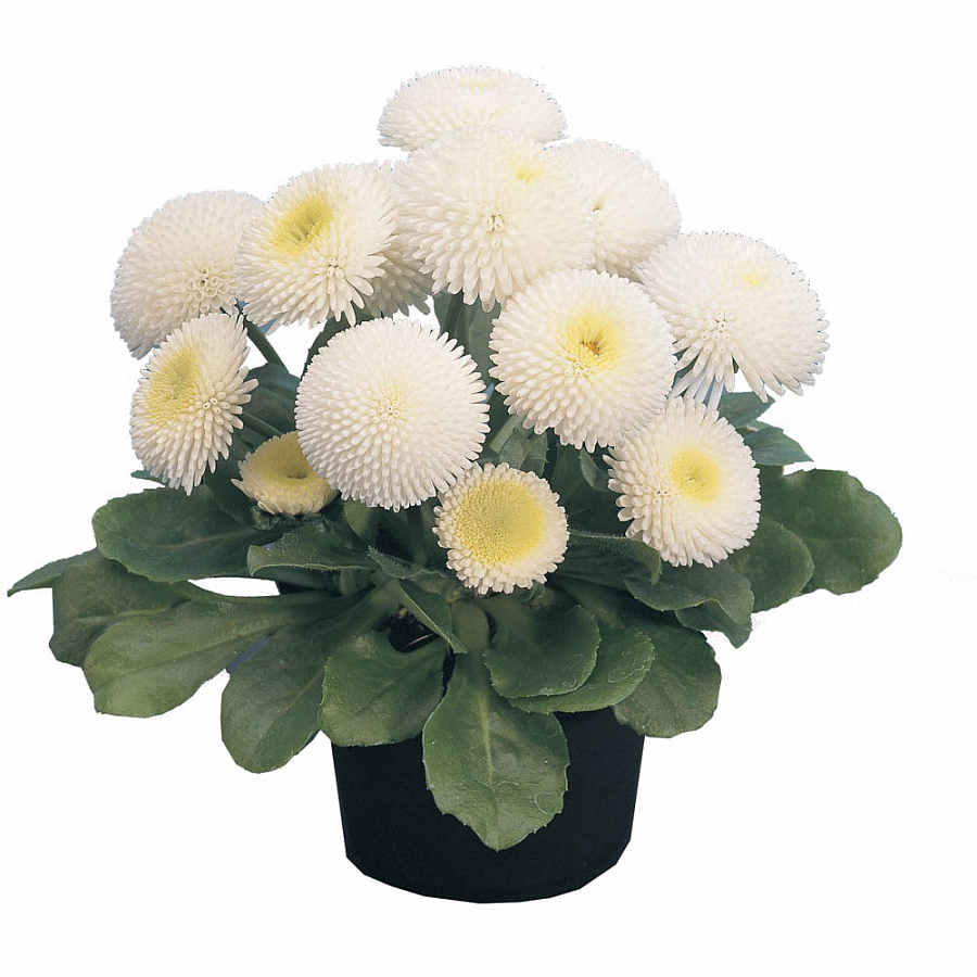 Саженцы Маргаритки многолетней Tasso White (Bellis perennis) могут расти на одном место около двух лет. В высоту достигает 15 сантиметров. Предпочитает солнечное место с хорошо дренированной почвой. Обильно цветут на богатых гумусом суглинках. Тассо Уайт отличаются многочисленными цветоносами, безлистными, щетинисто-опушенными. Соцветия в виде корзинок, белого цвета, раскрываются в мае месяце и радуют взгляд до июля месяца. Широко используется в обрамлении клумбы, балконного ящика или альпинария.
